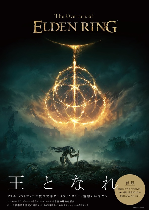 本書は2022年2月25日(金)に発売予定のダークファンタジー・アクションRPG「ELDEN RING」の内容を、昨年11月に行われたネットワークテストのレポートやディレクターへのインタビューから紹介していく企画ムック。このほか「ELDEN RING」を手掛けるフロム・ソフトウェアが過去に制作したダークファンタジー作品のアートワークを紹介する特集企画や、ファブリックポスター、ステッカーなどの付録類も収録した、「ELDEN RING」を発売の瞬間から120%楽しむための一冊です。