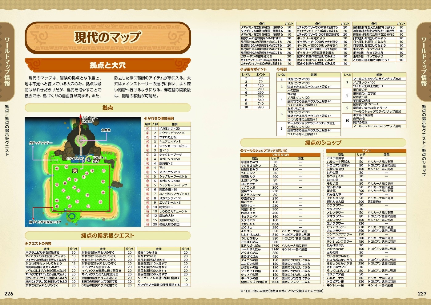 本書は、全ライフのアクションや試練、スキルボードといったデータを完全公開。それぞれの職を極めるために必要なノウハウをわかりやすく掲載しています。個性豊かな仲間たちの情報や、モンスターおよび採取物のドロップデータも詳しく紹介。さらに、現代・過去・バカデッカーナ大陸の便利なマップも収録。ショップデータ、採取ポイント、出現モンスターの種類など冒険に役立つ情報を掲載しています。データページでは、装備品・アイテム・素材・オブジェなど総数2000点以上のパラメータや入手方法、レシピを収録しています。