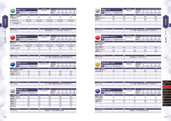 そのほか、全キャラクターのクラフトやアーツの詳細データやアイテムの入手条件などのデータも漏らさず掲載しています。